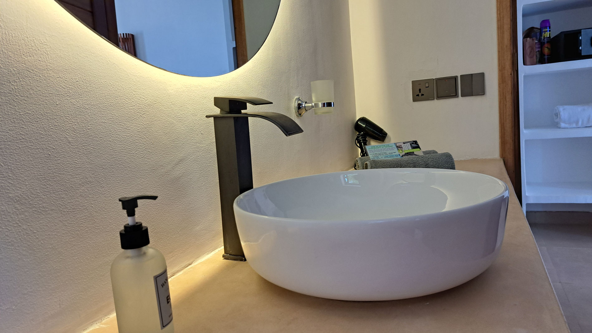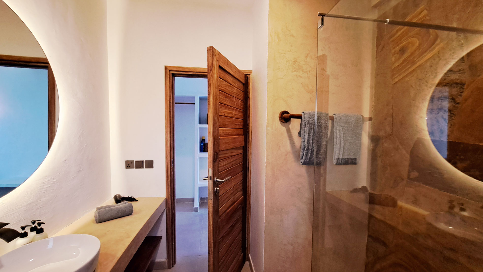 The spacious double room (30 m2) offers an extra large double bed (1.80 x 2.10 mtr), air conditioning, fan, a tea and coffeemaker, a terrace with dining area , flowerbeds and wide views over the ocean, as well as a private bathroom featuring a walk-in shower. All rooms have a safe deposit box and mosquito net and are accessible by stairs only. All rooms are non smoking.