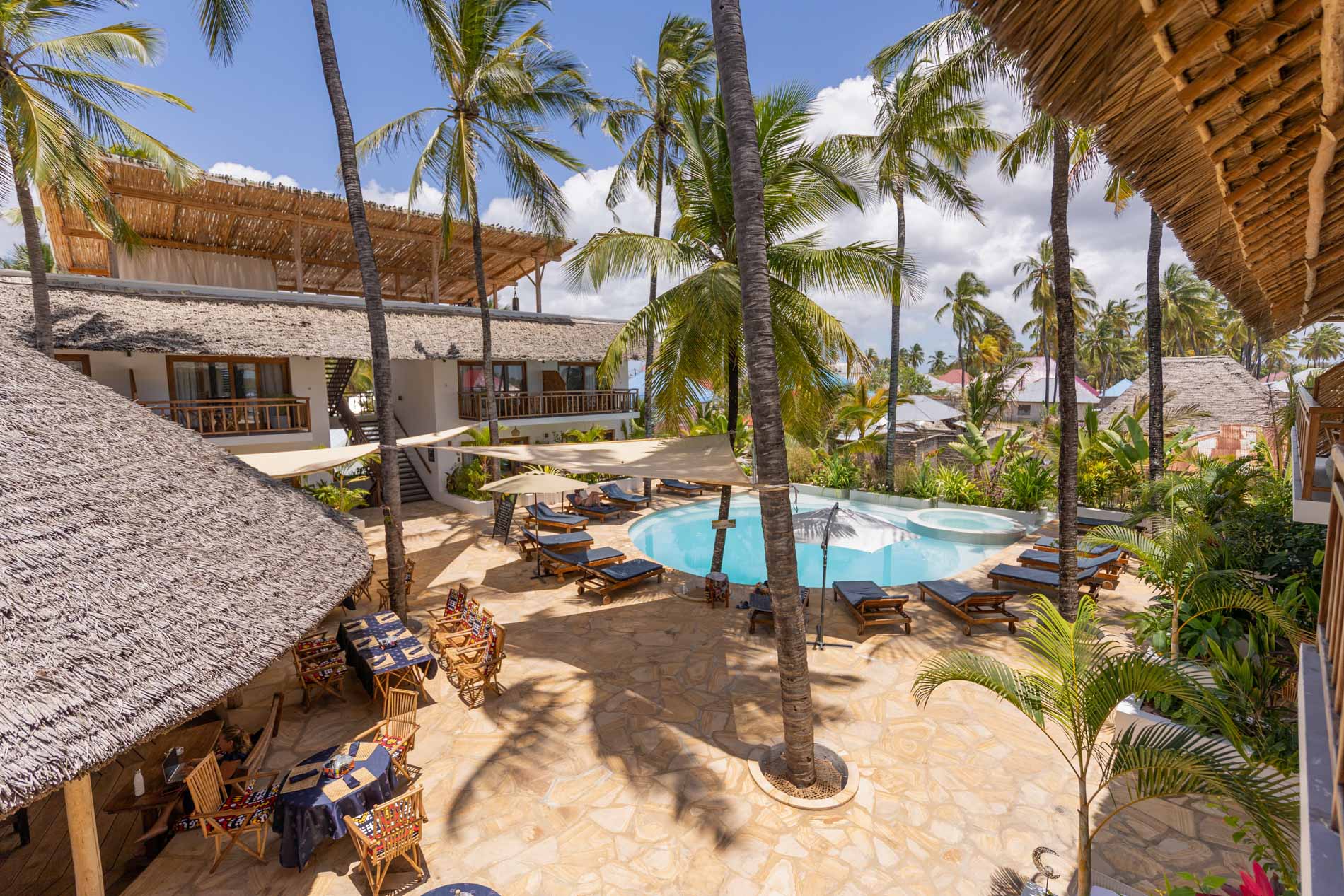 The rooftop terrace offers sweeping view of the ocean and the village of Paje and is a unique place on the east coast to enjoy the sunset.
